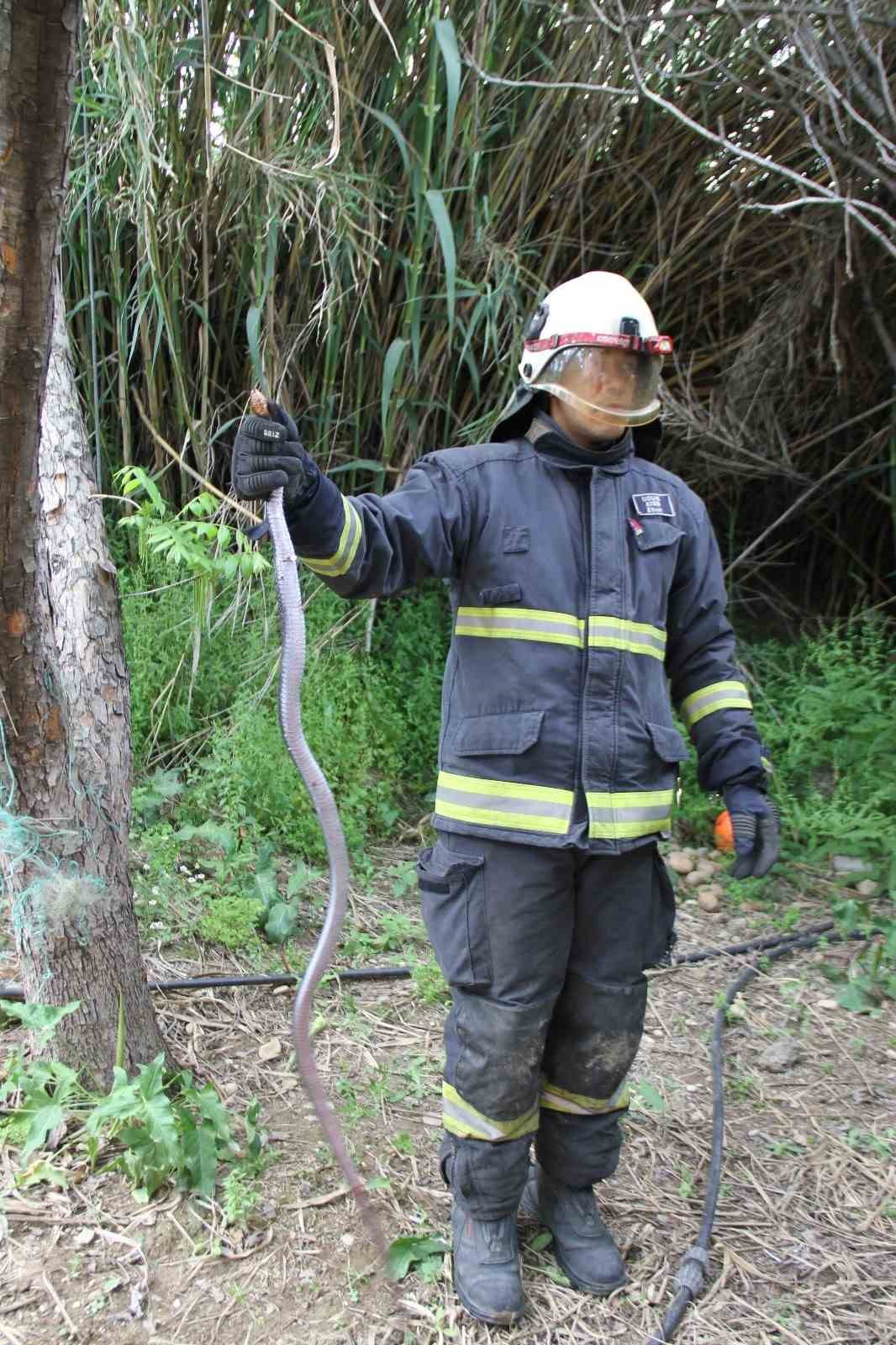 Serik’te ağlara dolanan yılanı itfaiye kurtardı