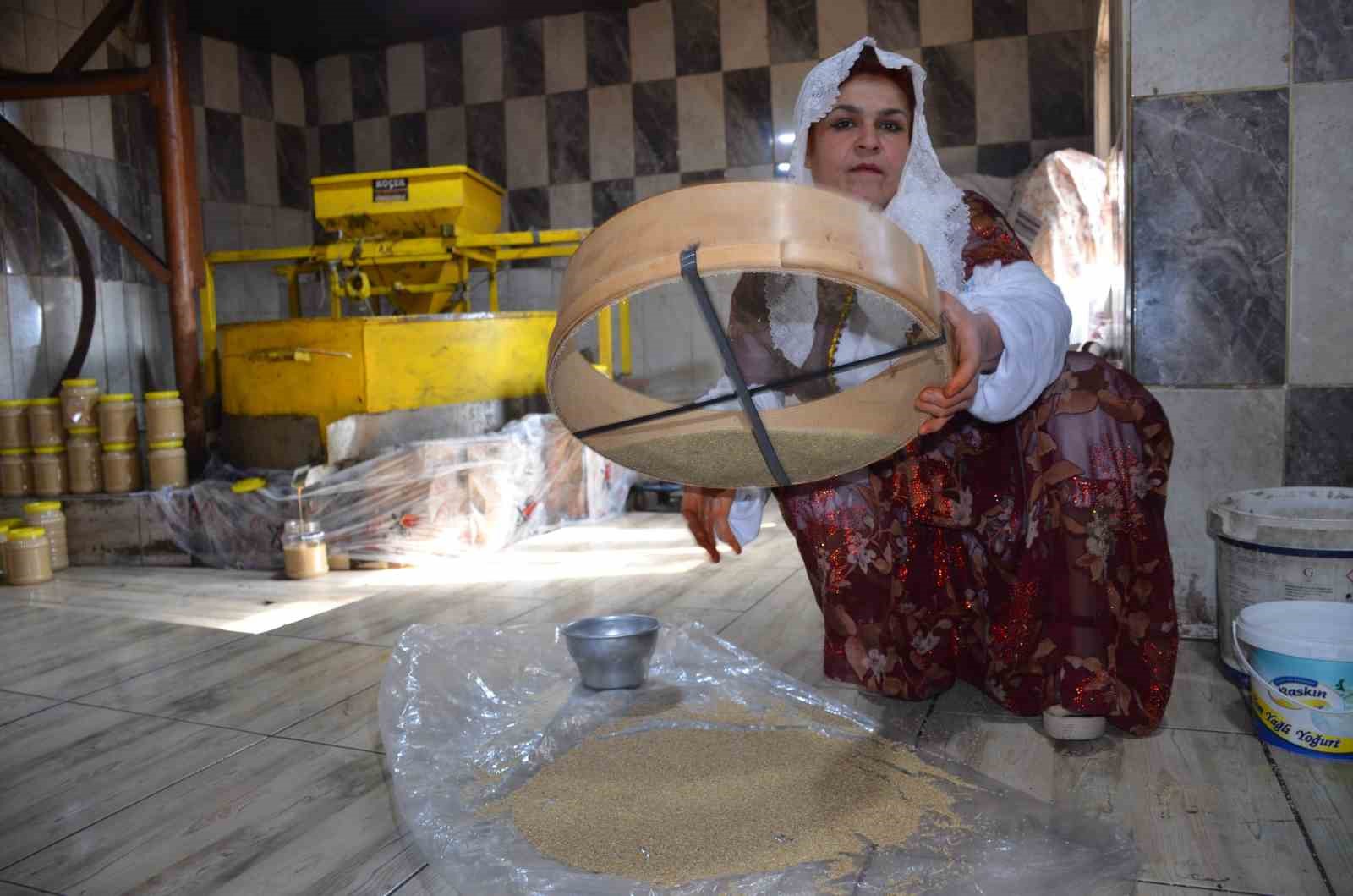 Şırnak’ta toplanan susamlar su değirmeninde işlenerek tahin haline getirilip sofralara ulaştırılıyor.