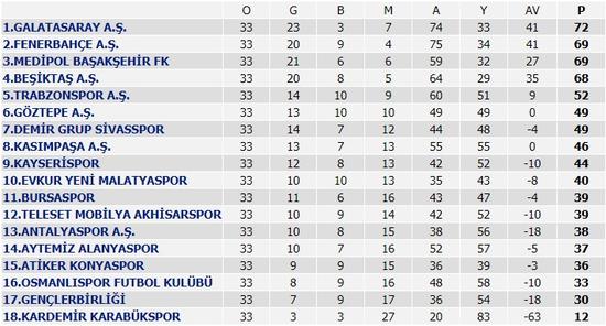 Süper Lig Puan Durumu 33. Hafta Sonuçları Ve 34. Hafta Fisktürü, Ihtimaller