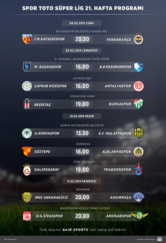 20.30 İstikbal Mobilya Kayserispor-Fenerbahçe (Büyükşehir Belediyesi Kadir Has)