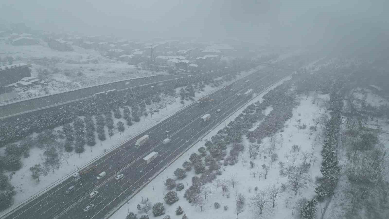 TEM otoyolunda kar yağışı dron ile görüntülendi