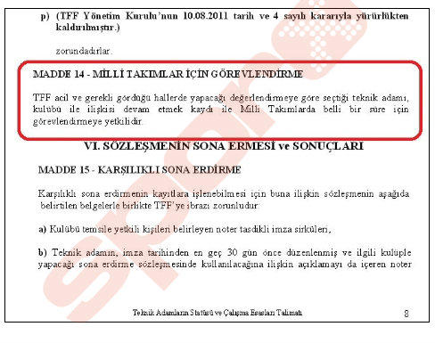 TFF'nin ilgili maddesi şu şekilde; "TFF acil ve gerekli gördüğü hallerde yapacağı değerlendirmeye göre seçtiği teknik adamı, kulübü ile ilişkisi devam etmek kaydı ile Milli Takımlarda belli bir süre için görevlendirmeye yetkilidir"