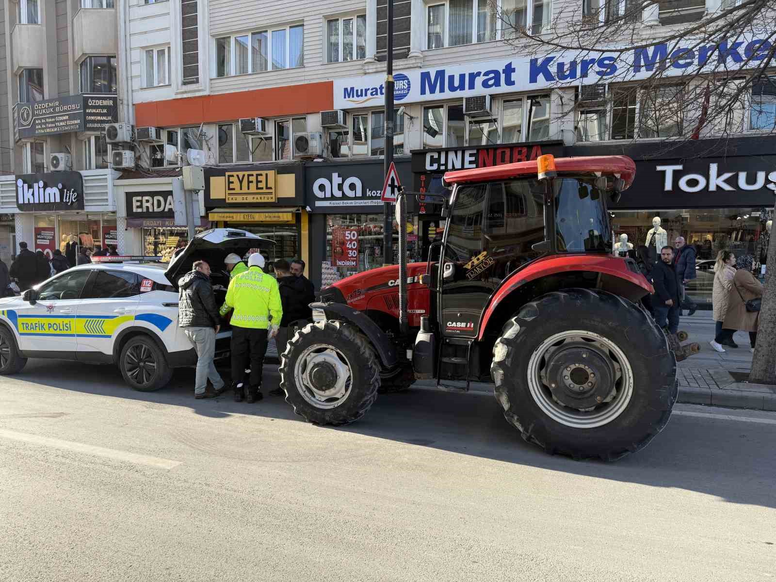 Traktörle kentin en işlek caddesine girdi, 4 ayrı maddeden ceza yedi