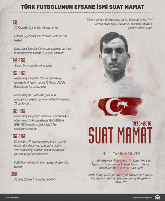 Türk futbolunun efsane isimlerinden Suat Mamat, vefatının 3. yıl dönümünde anılıyor.