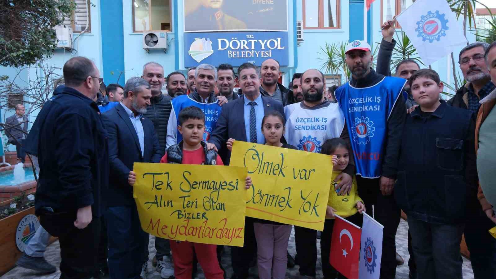 Dörtyol ilçesinde faaliyet gösteren Yolbulan Metal Sanayi Fabrikası’nda toplu iş sözleşmesi sürecinde yaşanan anlaşmazlık üzerine işçiler grev kararı almıştı. Yaklaşık 228 gündür grevde olan işçiler, iş verene karşı mücadelelerini sürdürüyorlar. İşçiler, Dörtyol Belediye Başkanı Bahadır Amaç’ı ziyaret ederek görüşme gerçekleştirdi. Ziyaret sonrası Başkan Amaç, işçileri desteklerini belirterek işverene ortak yol çağrısı yaptı.
